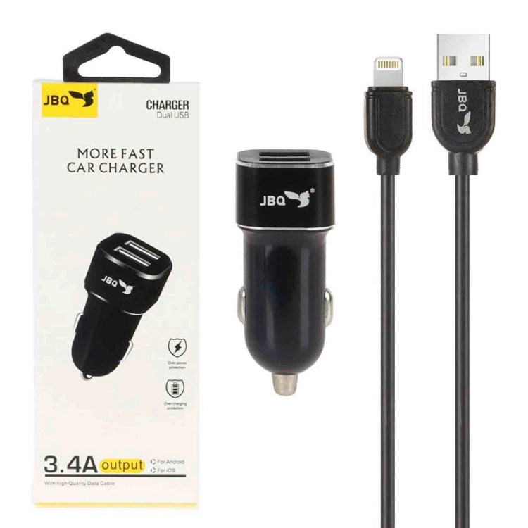 شارژر فندکی فست دو پورت JBQ مدل CN-45 18W همراه با کابل آیفون - مشکی (گارانتی یکساله رصاصی)